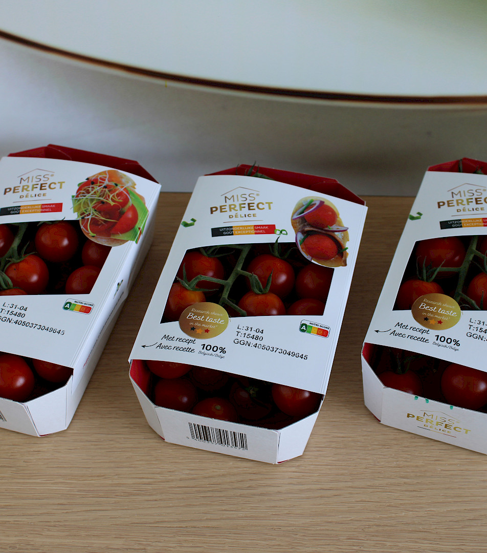 Den Berk Delice's packaging problem was that they were looking for a mono-packaging with space to communicate to the consumer in which the product (the Miss Perfect flavour tomato) would remain sufficiently visible. In addition, the packaging had to be machine-turnable. Optimum Group's Linerless Fruit Lid Ravenwood labels are the appropriate solution for this packaging issue.